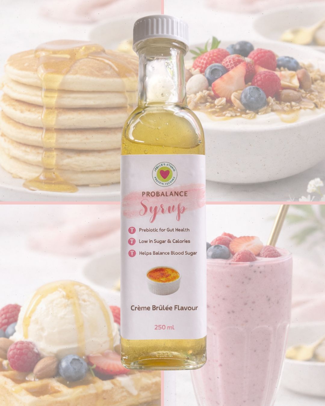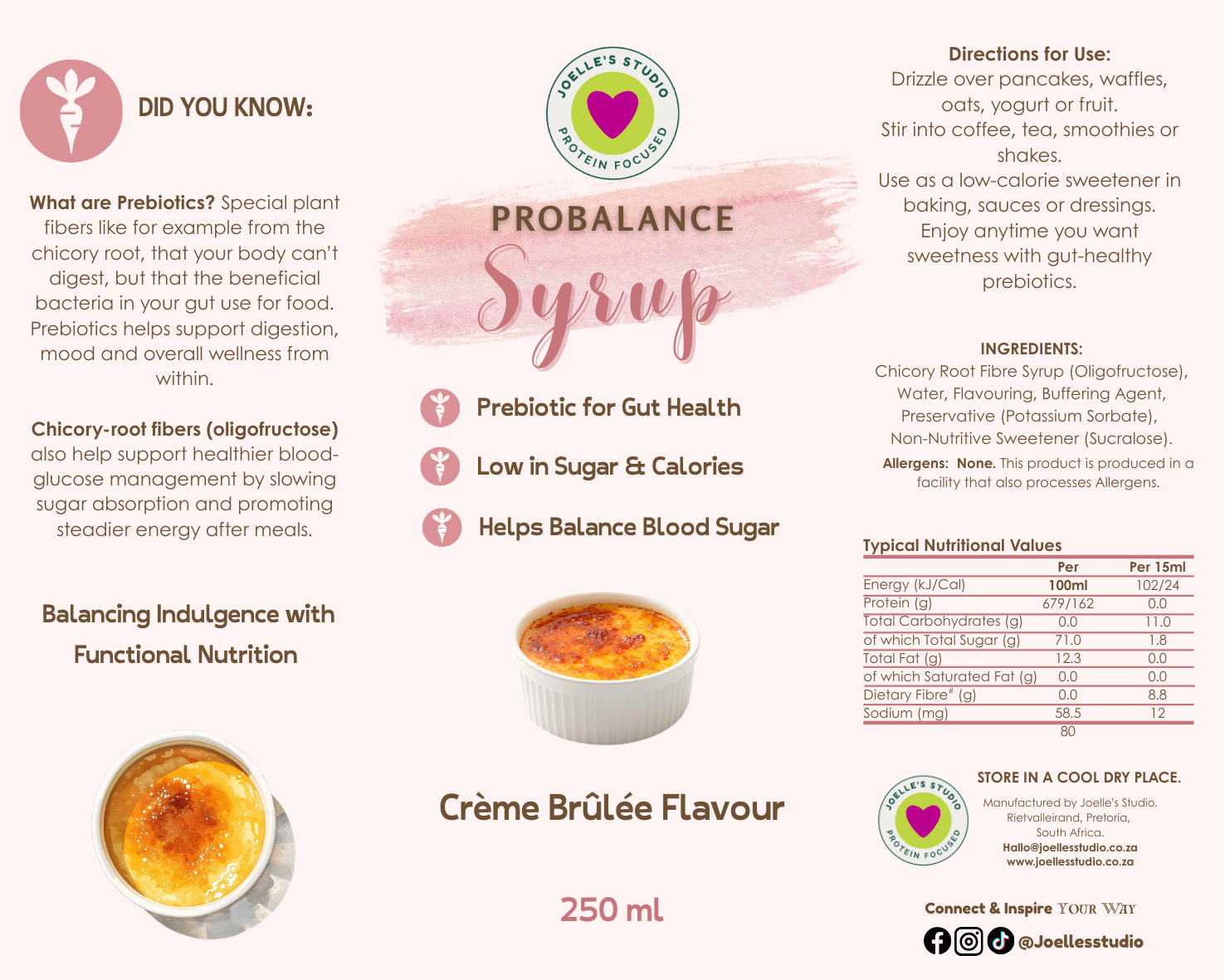 Our ProBalance Prebiotic Syrup – Crème Brûlée is a functional, gut-supporting syrup made with chicory root fibre (oligofructose) to nourish beneficial gut bacteria while satisfying your sweet tooth.